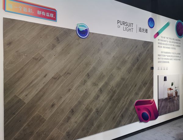 【胡平】:对,因为我们想树立环保和时尚的企业定位,感受到这种运动、健康,打造他的理想家。参加建博会为我们的用户、潜在的消费者传递这样的理念。从我们产品上来讲也一直打造环保和时尚,从创立之初一直是沿着这条路在走。从FCF的猎醛技术,到无醛添加,到无醛芯,一定是提供健康环保的产品。现在消费者的圈层在变化,年轻的消费者越来越多,不单产品品质要好,还要颜值高。我们希望从整个产品的出样、布展、活动形式上给消费者提供不一样的东西,不要把展会做得那么商业化、生硬,而是跟居家、生活更好的结合。