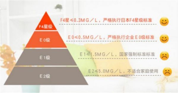 可能大家不知道甲醛释放限量平均值不能超过0.3mg/L是什么概念,这里给大家换算成国内环保标准:日本F3星标准=国家E0级标准=甲醛释放限量平均值不能超过0.5mg/L,所以F4星标准远超国家E0标准,且在使用面积上无限制。