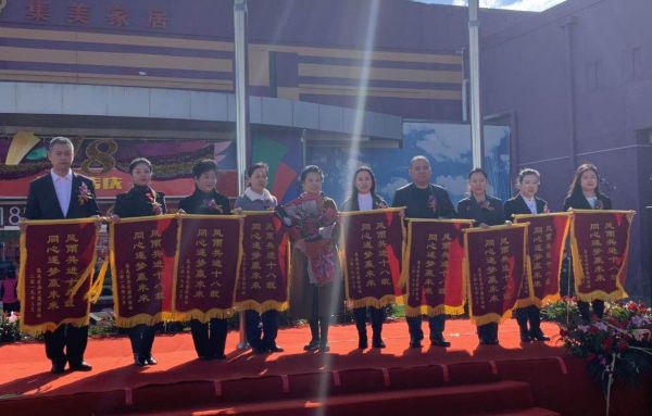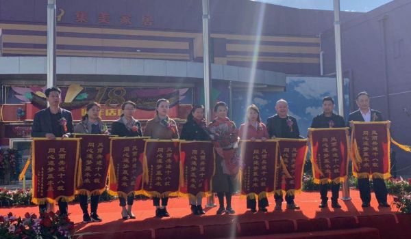 8点45分,伴随着威风锣鼓舞狮队的精彩表演,集美家居定慧桥商场庆生仪式拉开序幕。在升旗及奏唱集美之歌后,集美控股集团总裁刘志萍作店庆致辞,表示对集美定慧桥商场18周年生日的祝贺,以及对未来的期望。同时,也为追随集美18年的品牌商代表颁发锦旗,感谢他们在过去一年为集美家居做出的贡献。光明家具的闫总作为品牌商代表进行了发言。之后,商场还表彰了第一季度服务标兵。