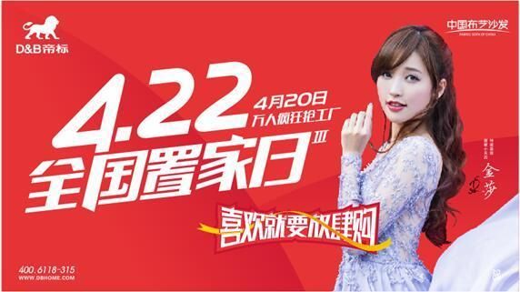 与此同时,帝标沙发还特邀了甜歌天后金莎,在4月20日的“喜欢就要放肆购“万人疯狂抢工厂”活动中,走进帝标成都工厂以歌声助阵,为本就激动人心的盛“惠”,献上一曲高潮迭出的最强音。
