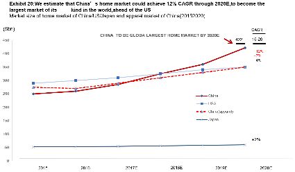 据相关机构发布,目前中国家装市场已经位列全球第二,并且在过去的五年内,依然保持着年均8%的增速,著名的投资集团高盛预计在2020年前,中国的家装市场将比现在扩大60%,每年的增速也将超过两位数,翻新改造的装修比重在中国目前仅占家装市场的21%,远低于日本的67%,高盛分析估计在2020年翻新改造市场将增长为目前的2.5倍,并占到整个家装市场的1/3。