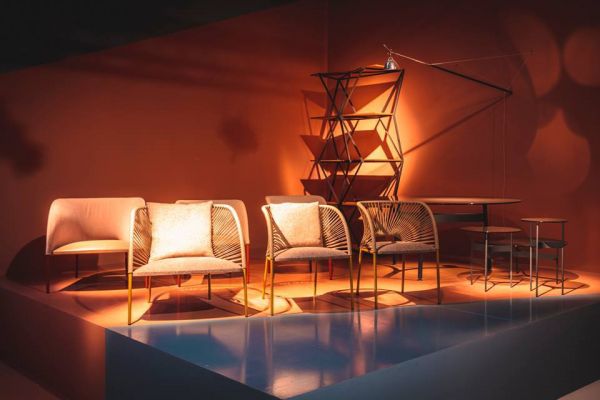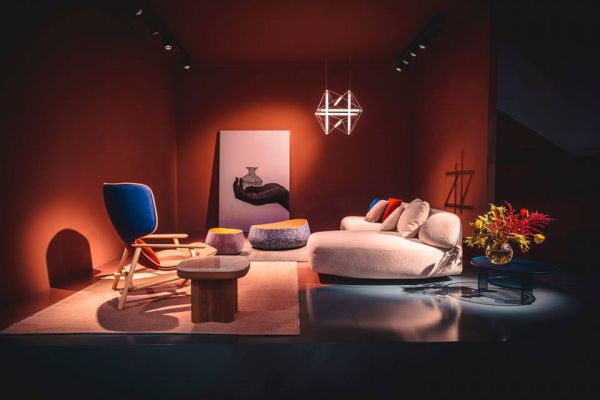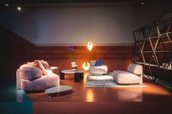 往年所有的家具都在地面上,我们意识到这样会造成大家在沙发上的停留时间过长,导致影响其他人与家具的接触。因此,我们认为,观看细节与产品体验应该分区而行,为了更好地呈现产品与设计,我们增设了展台,同时也划分出参观区与体验区,除此之外,Patricia Urquiola还为我们把空间涂上粉色和灰色,为整个展区带来强烈的视觉效果。