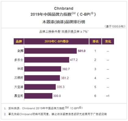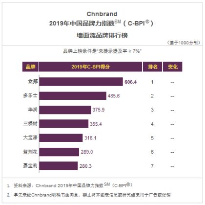立邦墙面漆和木器漆获2019年中国品牌力指数(C-BPI)第一