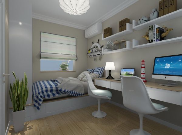 小卧室的储物空间较少,不妨可以在墙面增添一些置物架,或者做收纳性较强的榻榻米。这些方法都能为卧室增加许多储物空间,而且也不占位置。