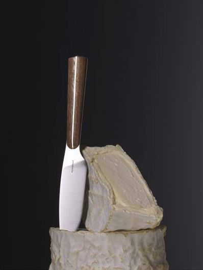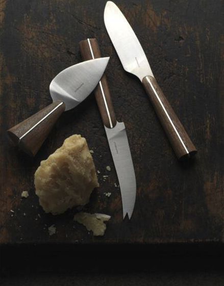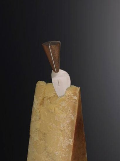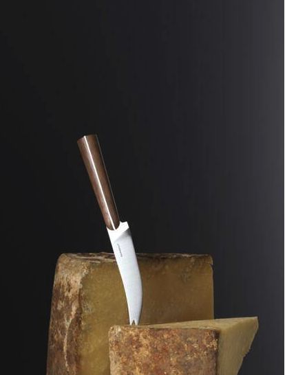 第一把刀具是为切割硬芝士而度身打造,特点为刀刃宽而锋利,短刀柄可以确保笔直且容易的切割。刀身形状非常适合用于切割或削片如意大利帕尔马之类的硬芝士。