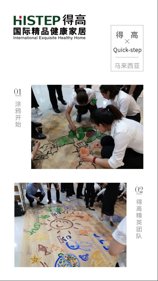 4月22日,得高健康家居带领其精英团队,在槟城Quick-step三层实木工厂基地,开启了一段以“创造持续不断的美”为主题的Protect+技术探索之旅。在槟城这座以涂鸦闻名遐迩的文艺小城,同样追求艺术的得高Quick-step地板发起的“以涂鸦为名”的地板艺术大赏,实名验证Protect+技术超强的耐污防污性能,佐证其出色品质。