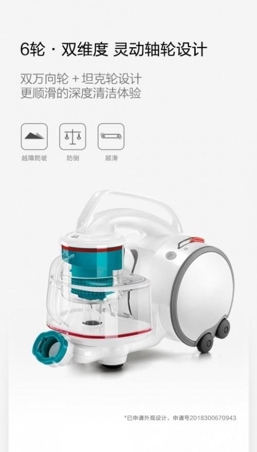 虽然卧式吸尘器的尘杯和电机等置于主机内,不需要依靠手腕的力量托举,但经常给人以笨重的感觉,除了体积因素,拖动不畅也是一个原因。小狗吸尘器S9 Mate独辟蹊径,大胆设计了6个金属电镀轴心的轮子,分别是位于主机前端的2个球型万向轮、以及后端的2组共4个小坦克轮。与传统卧吸的3轮设计相比,这款机器在拐角转向、越障爬坡时通过多点支撑实现均匀受力,拖行流畅、灵活、不卡顿,对家庭主妇们极为友好。