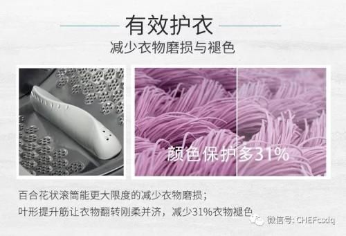 CHEF厨师CWW14113洗干一体机,针对多种衣服材料有不同洗涤功能,更重要的是通过了国际羊毛的认证,具备羊毛洗涤技术,有效降低羊毛衣物损坏和褪色,颜色保护多31%,保护衣服原色,延长衣物质感与寿命。