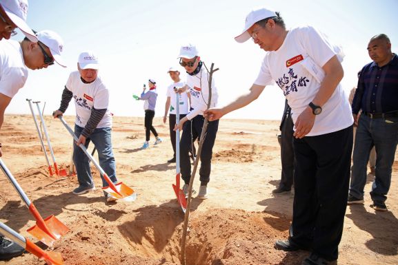 “我们的行动就像梭梭树,看似微小,但是聚少成多就能成为改变世界的力量”大自然家居董事长佘学彬在植树现场说道。2018年,大自然家居改变以往“一林一地”的植树模式,开启用绿色锁住风沙侵袭的通道,实现“环境绿化、企业碳中和、精准扶贫”并举的多功能造林目标;今天,我们再次走进阿拉善盟,捐种900亩梭梭树,进行防沙固沙,加强绿化生态修复建设。