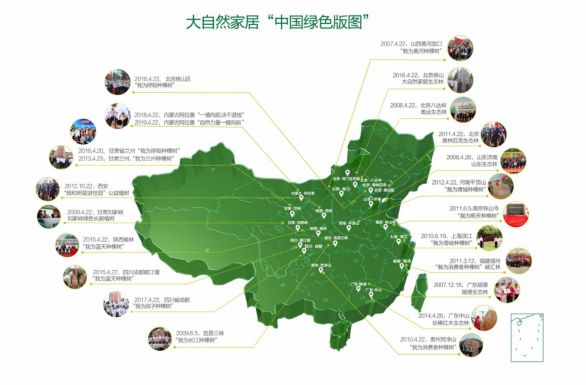 据悉,25年来,大自然家居始终秉承“担环保责任、普健康生活、做健康家居”的企业宗旨,自2006年起,携手中国绿化基金会,捐资2000万,持续打造“绿色版图工程”,先后在国内外组织“我为呼吸种棵树”、“我为孩子种棵树”、“一植向前,决不退梭”等公益活动。截至2019年4月,大自然家居在国内外16个地区,种植23片生态林,公益植树超过80万棵。