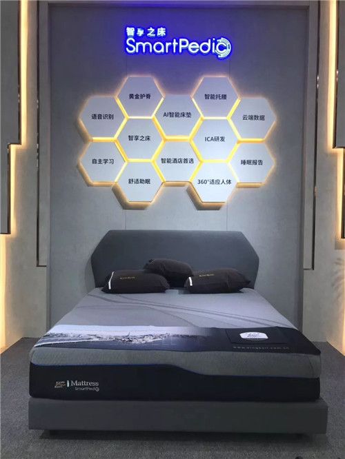 金可儿第一代民用级AI人工智能床垫SmartPedic智享之床是本次金可儿展位人气最高的产品。除了实时监测睡眠这种基本功能,它还能智能适应睡姿变化和睡眠习惯,提供专家级脊椎护理、瑜伽助眠、波浪起伏唤醒、语音互动人床“对话”,个人睡眠定制建议等功能,真正帮助大家解决各种睡眠困扰,提高睡眠质量。如果想解锁更多酷炫功能,欢迎亲自到展位体验!