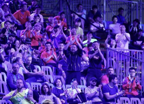 混双夺冠后,看台上的刘国梁和教练们起立鼓掌,许昕刘诗雯的主管教练马琳泣不成声。从开赛以来,刘国梁一直在台下观战助阵,不时地呐喊着加油鼓励的话语。