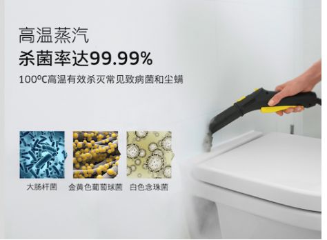 卡赫SC4蒸汽清洁机经过ENDERS实验室认证,除了可以在不使用任何化学试剂的情况下清洁油污外,还可以杀灭常见致病菌及尘螨,灭菌率达99.99%。