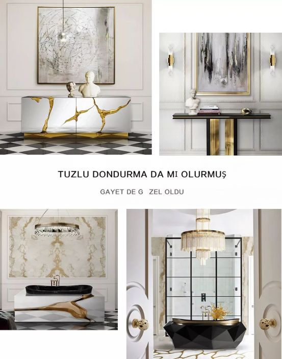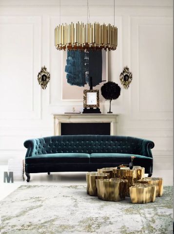 除了绒质面料,黄铜跟大理石更是绝配。优质的大理石具有天然的纹理,大气,艺术感十足;加上线条感极强的黄铜材质,就呈现复古,极富美学底蕴。