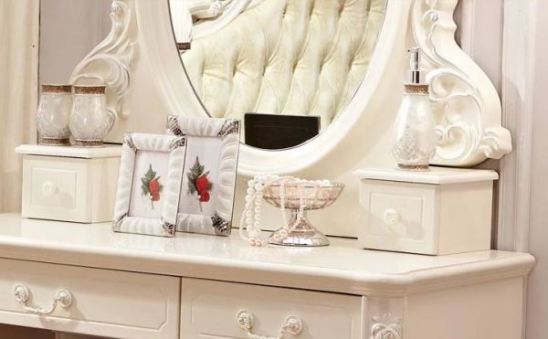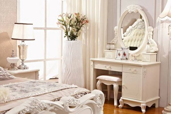 轻奢装修风格就像一张高品质的鹅绒被,看之温暖,用之更暖。在改造轻奢风的梳妆台时,不要忘了软装布艺的使用。除了上文提高的地毯,还有靠枕。在材质选择上以真丝、丝绒为主,颜色最好是白色。