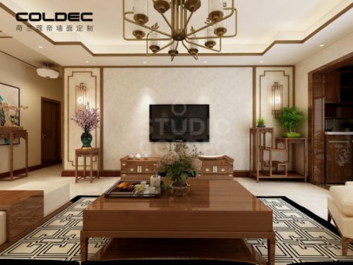 在最常用的客厅中,新中式风格的沙发背景墙,在传统元素的基础上融入现代特色,令整个空间素净悠长,体现的是一种返璞归真的气质。
