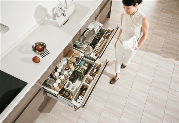 骊住厨房,是来自日本的厨房收纳专家,其独特的产品设计理念和领先的技术方案帮助帮助烹饪者在烹饪过程中工具的拿取,餐具的清洗等过程都舒适便捷。比如尤为令消费者称道的是其在日本拥有的专利技术“轻松抽”功能。该功能利用立体构造将空间合理划分,通过有效活用一般抽屉浪费掉的空间,将收纳空间发挥到极致,实现了大容量的收纳。此外,“轻松抽”还采用贴心的倾斜抽拉门板设计,灵活运用杠杆原理,轻轻一拉即可打开,可以减轻约30%的劳力,同时内置物品一目了然而且方便存取,让使用者在忙于做菜的时候也能轻松快捷取出物品。