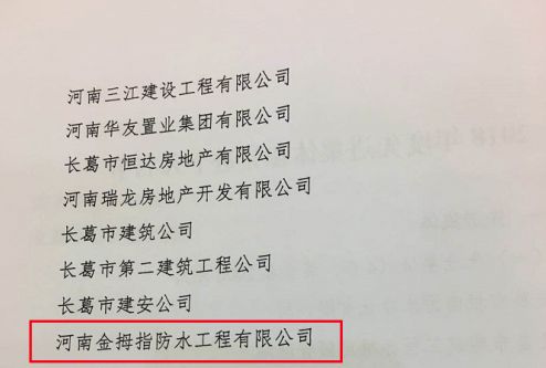 河南金拇指防水荣登先进企业名单