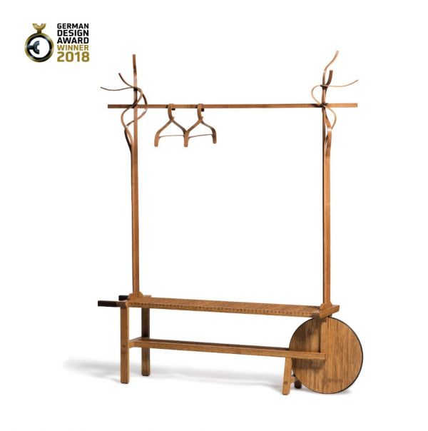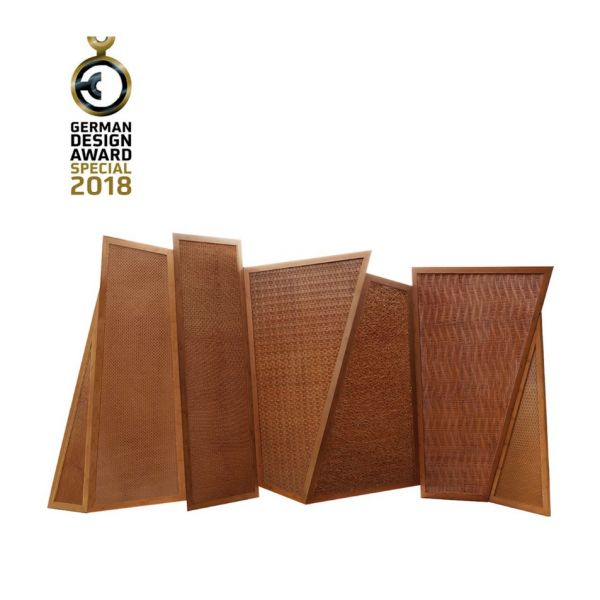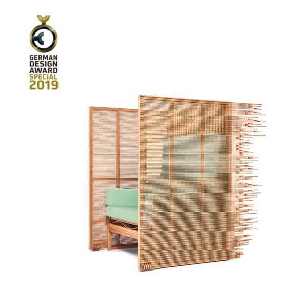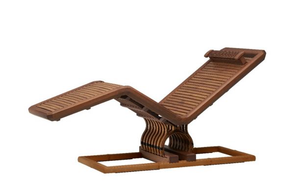 竹是人类最早应用的生产物料之一,除其独有的工艺价值和审美价值外,竹的环保性使其成为解决当下和未来环境问题的重要材料。石大宇先生将传统中华文化的基因转化成符合当代审美的设计作品,把原生态的竹提升到高端产品层面,更把中国设计推向国际舞台,并斩获众多知名设计大奖。其中《椅屏》创新地将中国屏风和禅椅相结合,以格栅简明虚实,显示“隐”与“现”的并存。《架衣车》由传统明式衣架结合农业独轮车而来,以热弯的竹条做出云龙纹之势,对应当下生活习性,可垂挂衣物。《屏茶》运用七种不同的竹编工艺,完成不规则造型立面,非垂直站立却能平衡稳重的挑战,打造出第一座以竹编创新地绷裱技法来完成的屏风。这些编法广泛应用于中国传统农、渔业生活的器物中。《椅巴适》运用竹条刚、柔、韧的特性和自主研发的当代竹工艺来设计一把属于中国当代的躺椅。躺椅中应用自行设计的“重量制动机构”,该机构由汽车碟刹和地心引力发想而来,当人躺在躺椅上时,“重量制动机构”在重力和摩擦力的双重作用下被完全钳住,就像被钳牢的碟刹一样,以达到躺椅角度固定不会上下位移的目的。当躺椅没有受到重量的影响时,就可以轻松调整上下倾斜角度,以低科技的机构成就功能合理,经久耐用又舒适的好设计。
