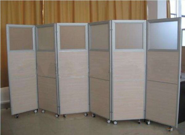 拼装式活动隔断属于轻质隔断,可根据用户需求来进行拆卸,拼装组合而成,,隔扇的尺寸宽度大概在60~120cm左右,厚度大概在6~12cm之间,隔扇用木材与薄壁金属型材框架制成的,内部采用填蜂窝纸,整个隔扇是采用螺栓、铰链连接,既能增加一定的强度,又大大提高隔音效果。