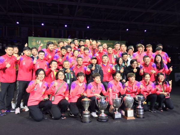 2019世乒赛,许昕刘诗雯获混双冠军,刘诗雯获女单冠军,马龙获男单冠军,王曼昱孙颖莎获女双冠军,马龙王楚钦获男双冠军,中国队再次包揽五金。这也是中国世乒赛历史上第九次包揽全部单项冠军,捍卫了其世界乒坛霸主地位。