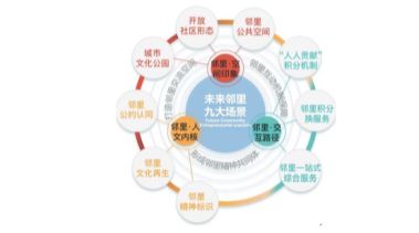 薛益成董事长认为,未来社区必须是‘’以⼈为本,⽣态化, 数字化为价值导向的新型城市功能单元”,未来的人居空间必须是“以⼈为本,⽂化引领”,围绕邻⾥、教育、健康、创业、建筑、交通、能源、物业等与人居生活密切相关的各要素之间完美契合的新型空间,按照此构想,未来的社区应包含邻里.人文内核、邻里.交互路径、邻里.空间印象等三大核心场景,届时,社区建设需要打造出邻里交流空间、构建邻里互动机制保障、形成邻里精神共同体。