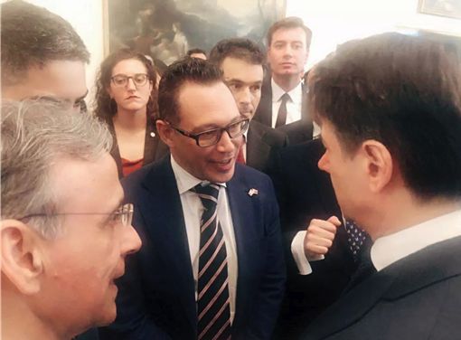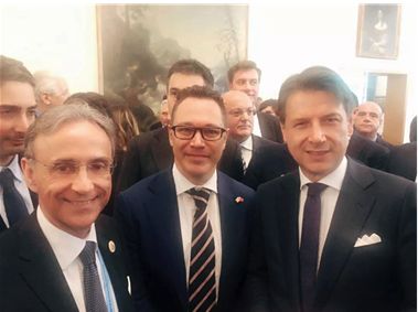 (右起:意大利总理孔特、Bruno Rinaldi先生,意大利驻华大使)