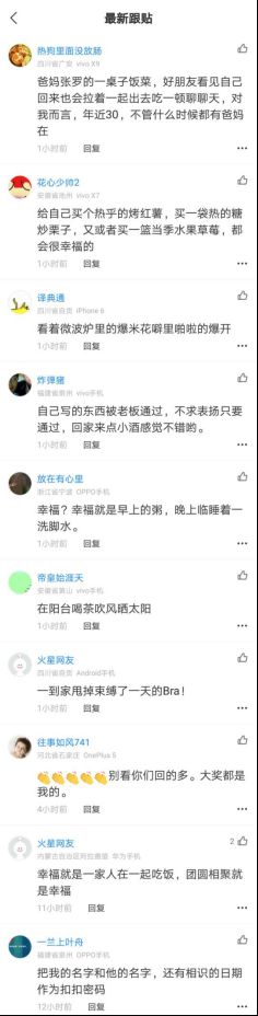 跟帖大赛刚开始一天,就有800多位小伙伴纷纷留言分享自己在家的幸福瞬间,下面这些“小作文”有没有戳到你呢?
