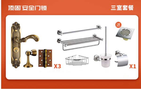 新中式窗境系列门锁套餐、卫浴五件套质惠组合,还送地漏