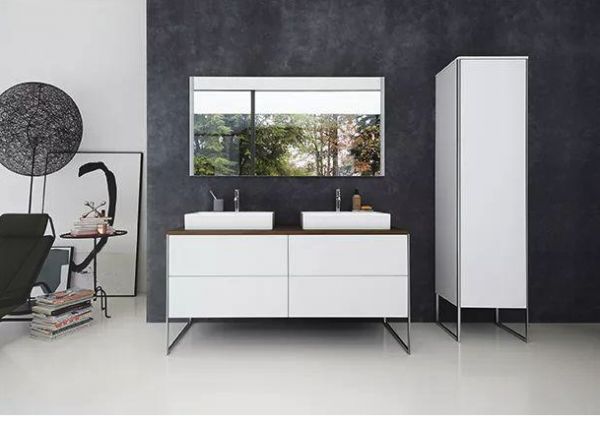 XSquare家具系列也可满足多种组合,完美搭配DuraSquare,Vero Air,ME by Starck以及P3 Comforts陶瓷系列。28款家具饰面,或哑光或漆面,或缎面哑光或高亮,都可自由任选满足个性化需求。无把手设计与触碰开关科技令盥洗区域呈现和谐一体的优雅气息,也令家具开合无比顺畅极简。