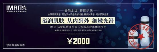 活动期间,凡购满10000元,即送价值2000元软水产品现金抵用券一张,购满20000元,即送价值3000元软水产品现金抵用券一张,全国仅限2000名!!