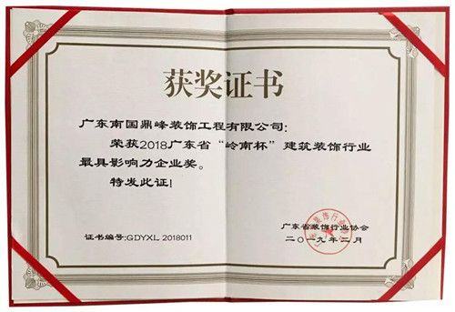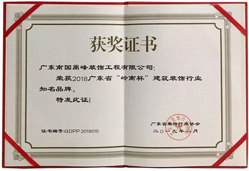在众多客户口碑见证下,南国鼎峰装饰在同行中脱颖而出,成为行业佼佼者,此次通过广东省建筑装饰协会评委会的层层严格筛选审核,入围此次2018年度广东省建筑装饰行业“岭南杯”获奖名单,凭借实力拿下三大奖项殊荣!
