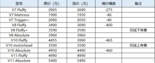 上面只列出了部分戴森吸尘器型号对比,想了解更多型号价格调整幅度请看下图。