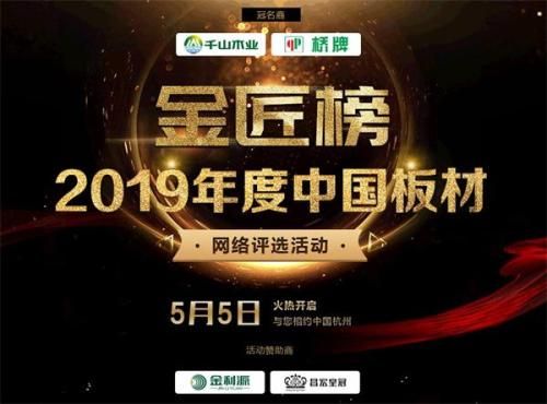 在此背景下,中国木业网作为木业行业门户媒体,一如既往地秉承精益求精的精神,举办2019年度中国板材“金匠榜”网络评选活动,本次活动由千山木业、桥牌联合冠名,金利源、昌宏皇冠赞助,聚焦板材行业,发现匠心精神,引导板材企业开展内部变革与技术创新,以蓬勃的姿态突破发展的桎梏。同时强化企业品牌竞争力,引起全社会对板材品牌的广泛关注,使其能充分展示风采和实力,推动更多板材企业步入发展快车道! 中国木业网“金匠榜”网络评选活动的前身是十大板材品牌评选活动,从2014年至今,已连续举办5年,通过线上投票线下颁奖相结合的形式,让行业领导、优秀企业代表和众多经销商共聚一堂,探讨品牌运营,优化产业链,共同维护木业行业稳定发展。近年来,该活动以广泛的影响力和有口皆碑的美誉度得到了行业内外的高度认可,俨然成为木业行业一年一度翘首以盼的盛事!
