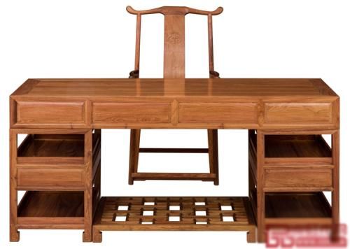南枝红《缅甸花梨1.8米素面办公桌二件套》
