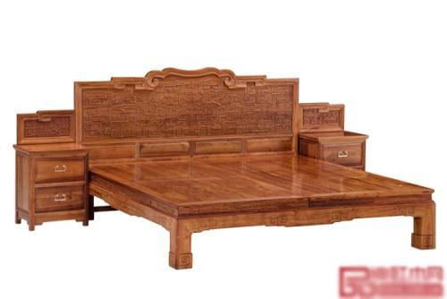 南枝红《缅甸花梨卷草拐子纹大床三件套》