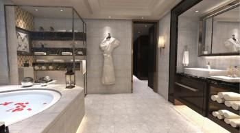 自然纯粹的色彩还原,细腻均匀的肌理效果,远看粗犷、近看精美的石质纹理,流畅而奔放,宁静且优雅,营造出空间的唯美唯奢,在灰色系瓷片的调剂下,空间沉淀出岁月的质感。