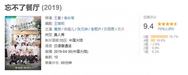 (《忘不了餐厅》豆瓣评分)