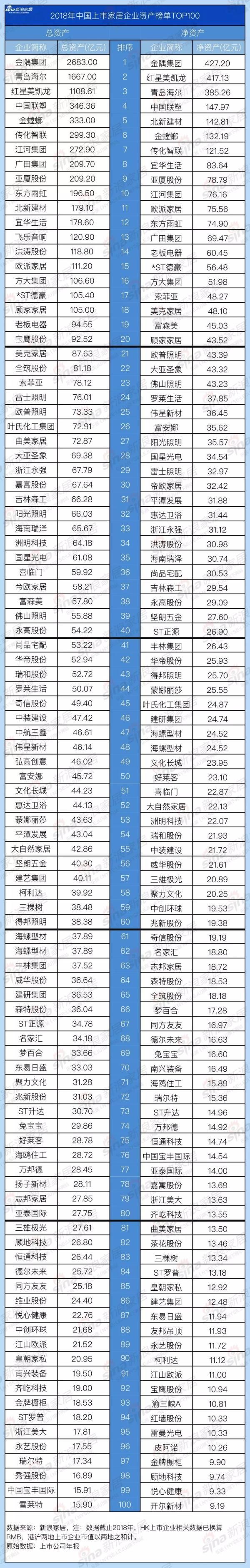 独家|跨万亿大关,2018年上市家居企业资产榜单TOP100