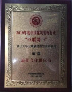 会上,升华云峰凭借过硬的品质荣获2019年度中国建筑装饰行业“互联网+”最佳合作供应商。获得这一殊荣,是业界对于我们莫干山品牌的肯定。