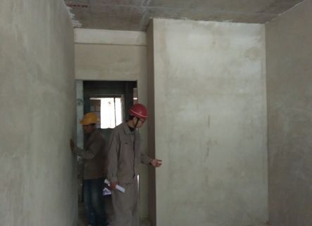 1、确定抹灰顺序,先上后下,从门口一侧开始,整个墙面连续作业。