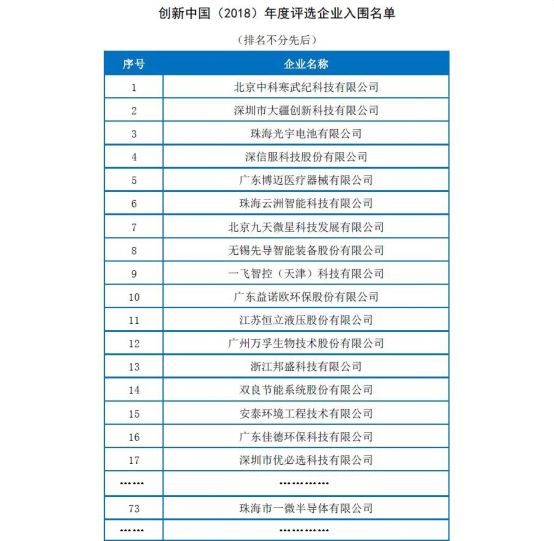 图1 “创新中国·2018年度评选”新锐企业入围名单