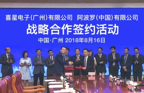 在2018年8月16日,在广州市经济技术开发区政府会议室,由陈小华区长主持的“阿波罗(中国)有限公司与韩国喜星电子(广州)有限公司战略合作协议”正式签订。出席签字仪式的有:开发区区长陈小华与相关政府部门的领导,以及阿波罗(中国)有限公司董事长陈志雄、韩国喜星电子公司社长等企业领导。