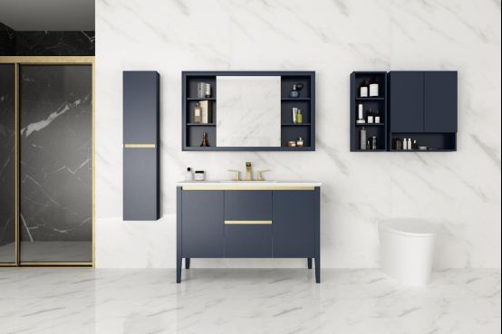 蓝与金,白与褐,多种色彩搭配让浴室充满温馨动人的生活气息,帮助我们从被心情左右,到心情妥善安放。
