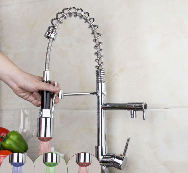 抽拉式水龙头采用特殊镀层处理技术,清洁剂刷洗不褪色、不腐蚀,不易粘油污、易清洁、耐磨损。