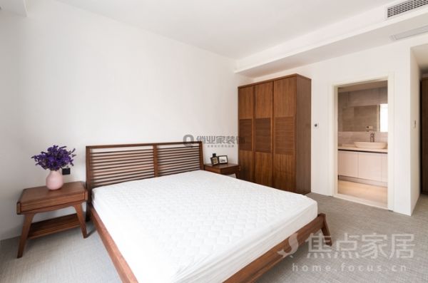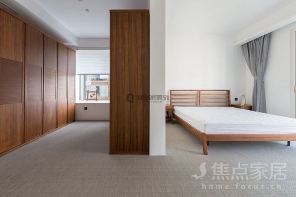 3、卧室装修:软装还未齐全,更能清楚可见整屋造型。满吊顶可实现筒灯代替主灯,不仅仅局限于形式美,而更倾向于打造出业主对极简舒适卧室环境的向往。