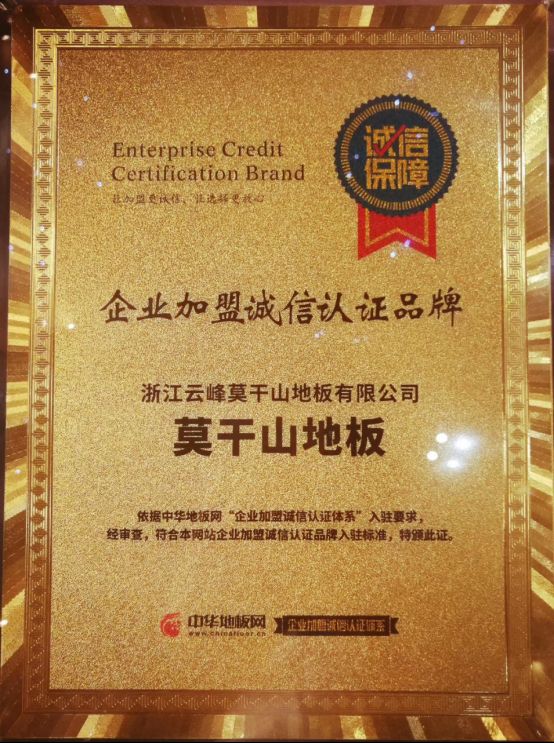 “企业加盟诚信认证体系”是中华地板网2019年重点打造的加盟商服务保障体系之一,体系的服务宗旨是帮助加盟商“找到靠谱好品牌”。莫干山地板成为首批诚信认证企业,诚信、品质得到了行业的肯定和支持。莫干山地板被中华地板网授予“诚信认证品牌”,这是一种莫大的鼓励,更是一种无形的鞭策,莫干山地板一定不负众望,成为加盟者坚实有力的强大后盾。