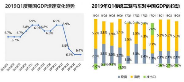 右:2019年Q1传统三驾马车对中国GDP的拉动