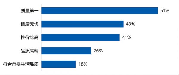 2、中产阶级对家电消费品的要求质量第一的需求达到61%。