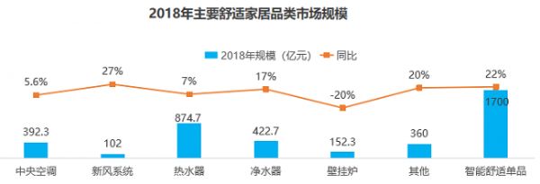 1、2018年舒适家居各类单品市场规模均保持良好的增长态势,系统方式销售的舒适家居市场规模达500亿元;